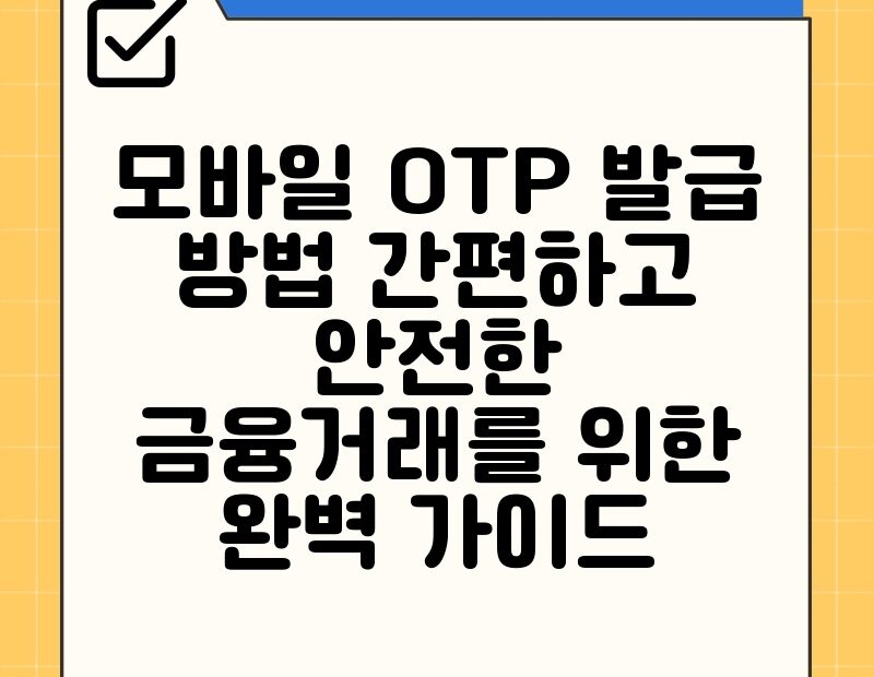 모바일 OTP 발급에 대한 정보를 찾고 계신가요? 점점 더 많은 금융 서비스들이 온라인으로 이루어지면서, 안전한 금융 거래를 위한 보안 시스템 확보는 필수입니다. 이 글에서는 2025년 현재 가장 안전하고 편리한 모바일 OTP 발급 방법과 유의사항, 각… 모바일 OTP 발급 방법 간편하고 안전한 금융거래를 위한 완벽 가이드